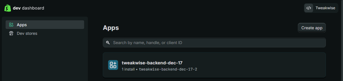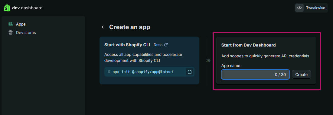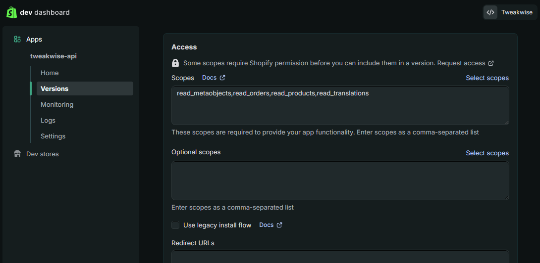 You must create a private app for Tweakwise. If needed, you can read Shopify's documentation on custom apps here.