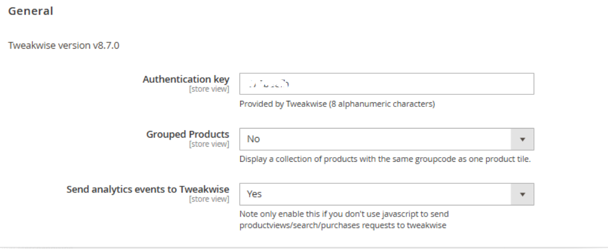 To automatically enable Event Tag events, go to Stores > Configuration > Catalog > Tweakwise. Look for Send analytics events to tweakwise and set the value to Yes.