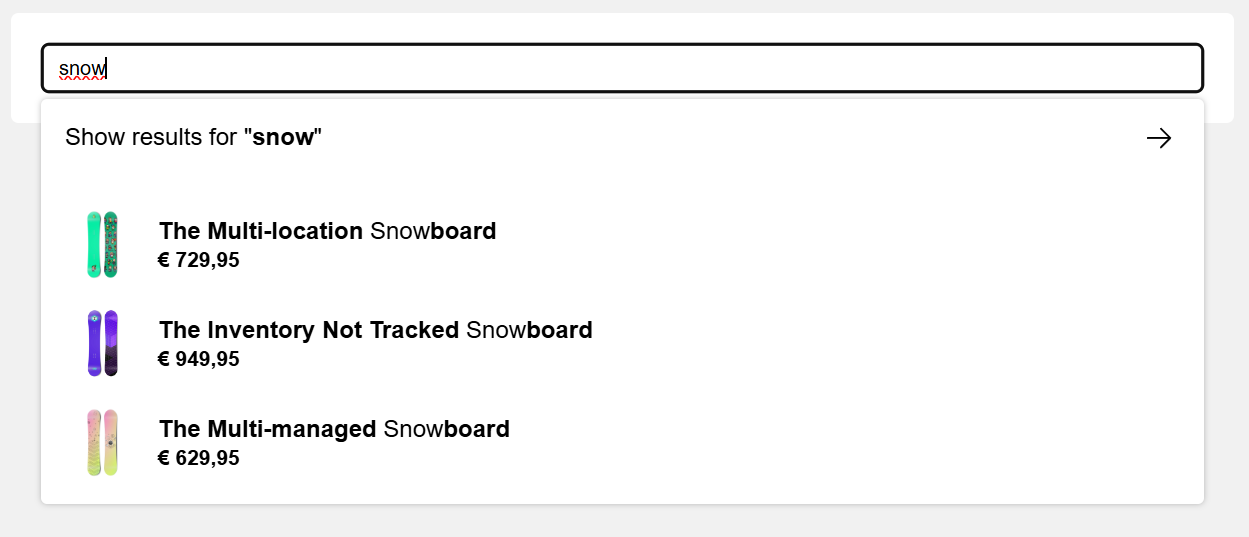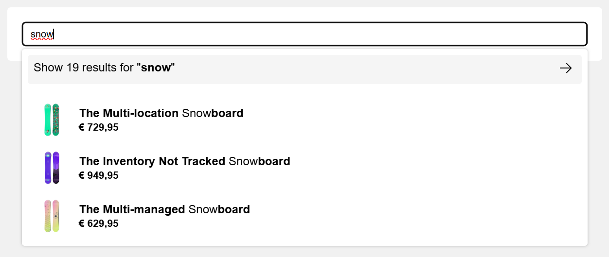 resultsButton.enabled: Indicator to show a link"Show results {query}"to all search results for the current searchterm. The text can be changed through translations (optional).resultsButton.showResultsCount: shows the number of results for a given searchphrase suggestionresultsButton.visibleOnEmptyResults: Indicator to show the link, even when there are no suggestion results.