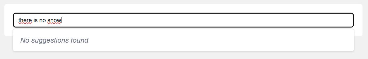 noResults?: boolean: Indicator if"No suggestions found"text should be displayed. The text can be changed through translations (optional).noResults?: HTMLElement: If provided, this element will appear instead of the default text to allow more customization.