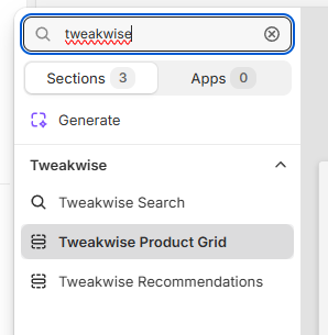 To display Tweakwise Commerce Pages on your collections, create a custom Tweakwise Product Grid section.